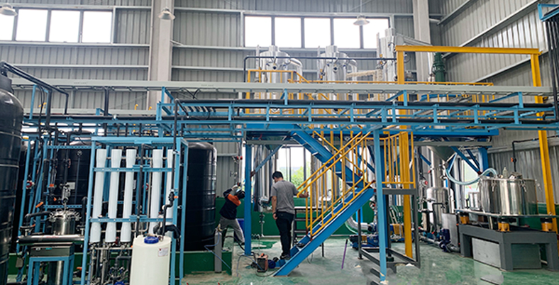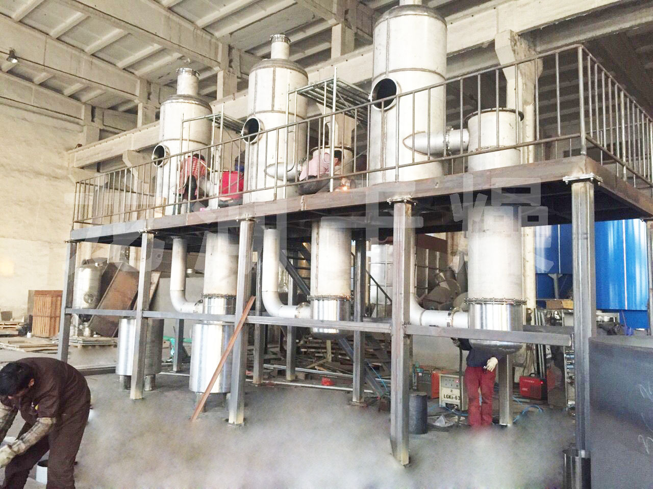 張家港某公司金屬清洗廢水使用現(xiàn)場(chǎng),蒸發(fā)量每小時(shí)200kg,雙效蒸發(fā)器,配備電加熱蒸汽發(fā)生器